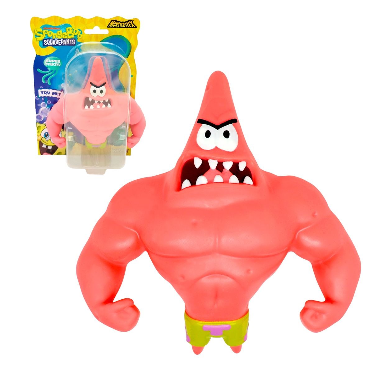 Figura Stretch De Goma De 11 A 15 Cm Que Se Estira Bob Esponja - Patricio Musculoso