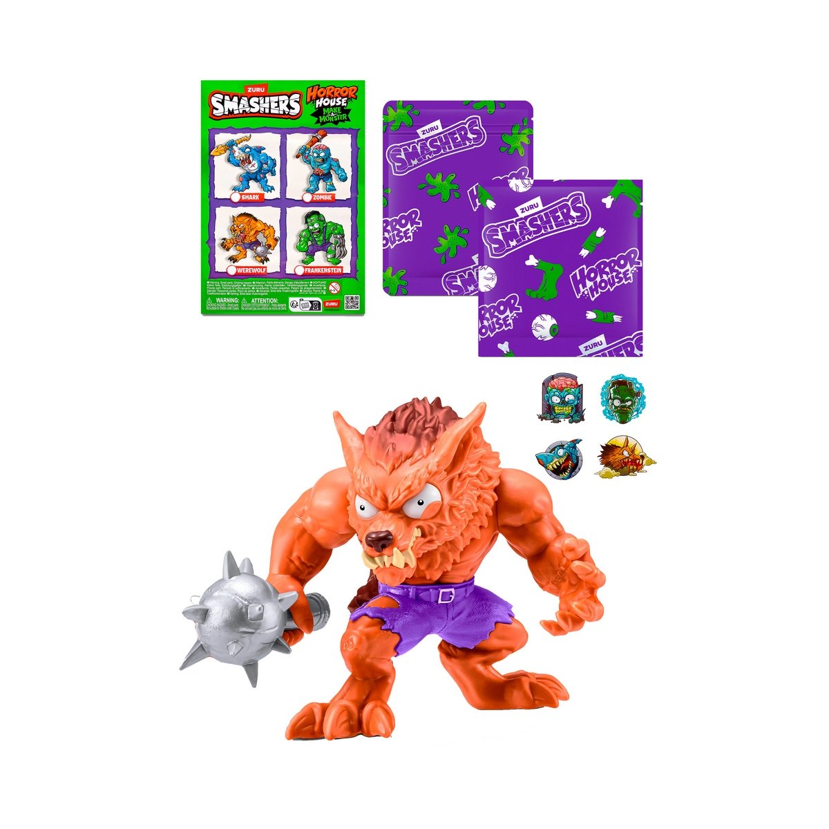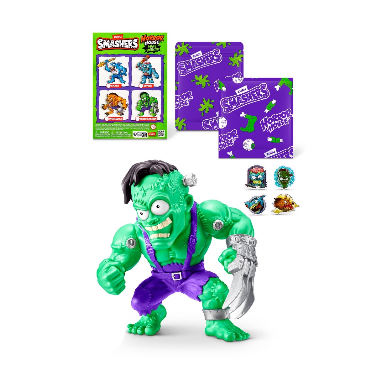 ¡Prepárate para una experiencia espeluznante! Abre la terrorífica mano calavera y encuentra más de 10 sorpresas ocultas para construir tu propio monstruo. El set incluye una base, un paquete de slime, stickers, un arma, etiqueta, guía del coleccionista e instrucciones, todo para que vivas una aventura monstruosa. Podrás mezclar y combinar piezas para crear criaturas como Frankenstein, hombre lobo, zombie y muchos más. ¡Descubre cual de todos monstruos te tocará!