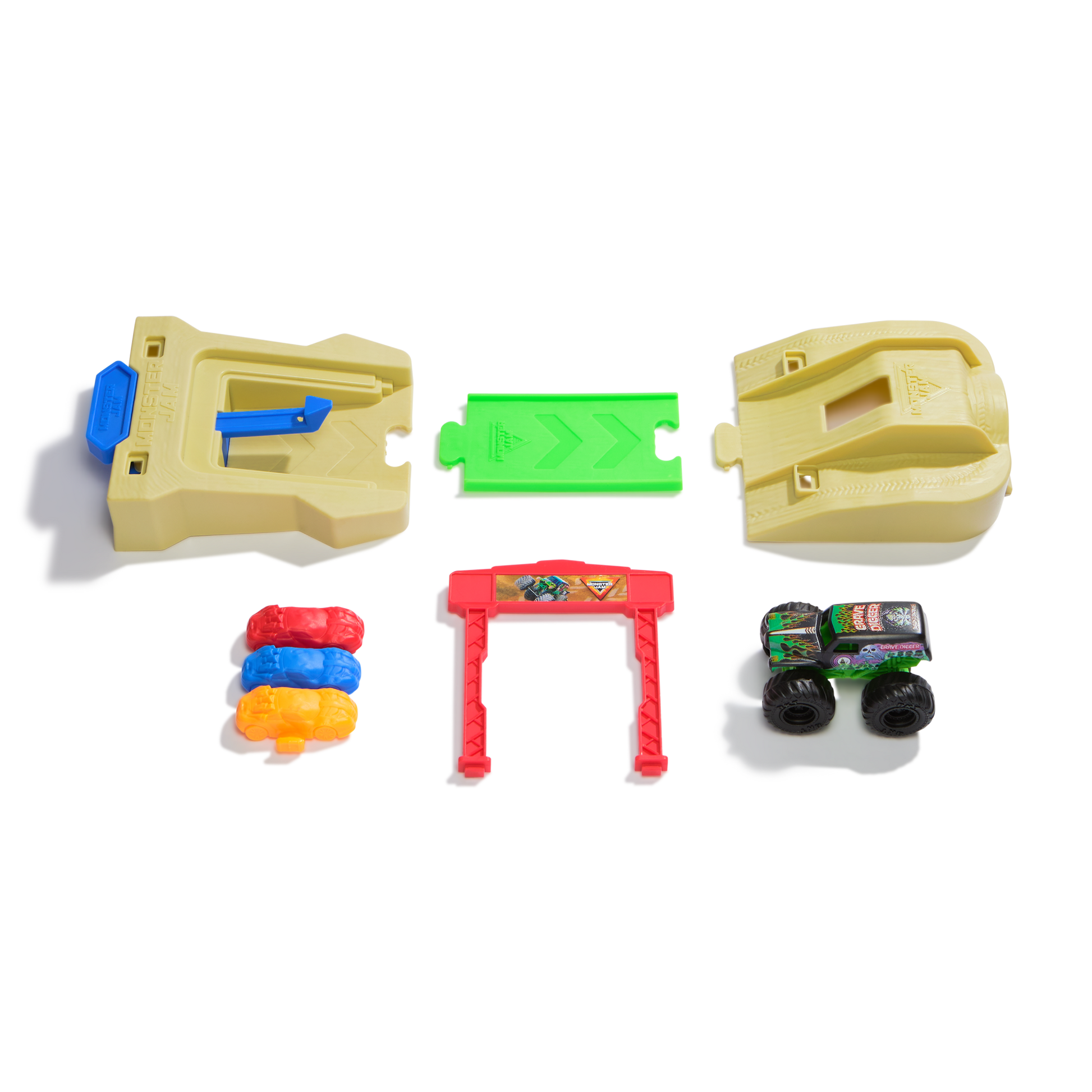 Monster Jam | Llevá las acrobacias de Monster Jam a otro nivel con el Launch & Race Jump Truck Playset. Este increíble set te ofrece dos opciones emocionantes: uno con acción de lanzamiento y otro con salto, para que puedas recrear las maniobras más impresionantes. Cada set incluye un camión a escala 1:72, un lanzador o rampa, y 3 obstáculos diseñados para desafiar tus habilidades y hacer que la diversión nunca termine.